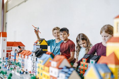 3 Nachmittage lang bauen wir aus tausenden von Legosteinen eine mehr als 10 Meter lange Stadt mit Schloss, Hochhäusern, Kirche, Bahnhof, Fussballstadion und vielem mehr.